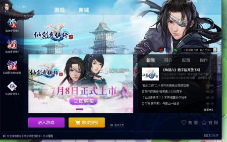 等待一小会儿,就会出现客户端的主界面,默认是有四个游戏图标:仙剑六、仙剑五前传、仙剑五和仙剑四: