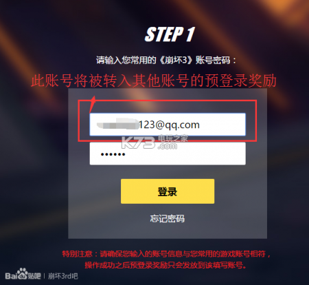 先登录需要转入奖励的邮箱账号,崩2的字母加数字账号