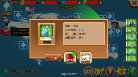 雷达一次会搜寻好几隻怪兽,你可以选择抓或不抓,如果不抓的话雷达搜寻是需要冷却的,因为冷却时间有点长,建议新手时期能抓的都抓,比较不会浪费次数。