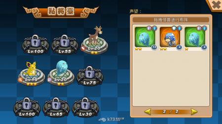 点将的方法不是很固定,中间那排是承受最多伤害的一排,所以中间LV20那一格建议放血量厚一点的宠物,LV19那一个放伤害比较大的,上排LV20的放攻击力较多的宠物。这样的组合可以在前期轻鬆通过好几个地图呢!