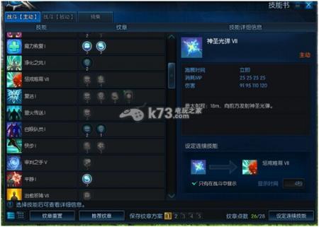 在单练时,祭司的纹章点法很简单,强化祭司为数不多的攻击技能即可。