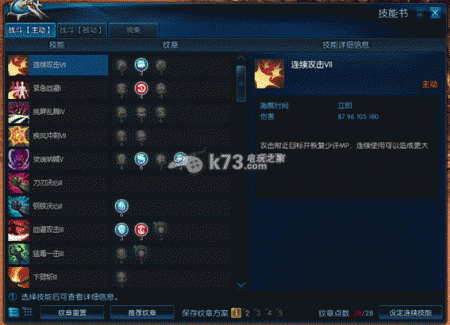 集中纹章,CD减30%。神速纹章,50%概率在施放该技能后,攻击速度提升15%。