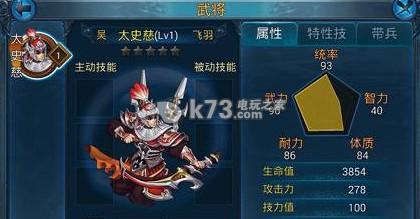 太史慈是玩家在游戏中使用技能秒将秒兵的专用武将,玩家在进行武将培养的时候可以走只秒将流(技能全部选择飞戟),也可以走秒兵流(主动技能全部全打火箭),这样正在进行战斗的时候可以轻松将敌人消灭。