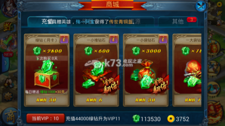 30元的月卡是最值得的,分期收获可得32800绿钻价值328元,每天上线自动返还1000钻,但是不计算VIP经验。