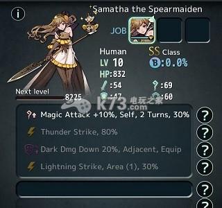 ex.像是小魔女弓手65等学到的第四招 每次攻击都有30%让自身周围九宫格怪麻痺叁回合,而我认为目前最好用的SS首抽是援x系列
