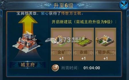1、那么我们先将城主府升级到6级: