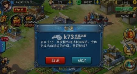 开启新建筑(需城主府升级为9级),此次升级到6级,需要720个金币,大家平时要记得攒金币哦!但是时间很长,这个时候我们可以考虑提速。