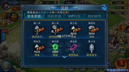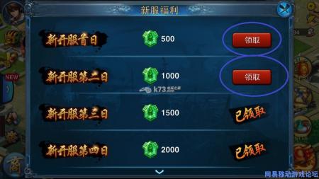 新服有登录奖励,只要每天登录游戏就可以领取不菲的奖励,这个一定要参加