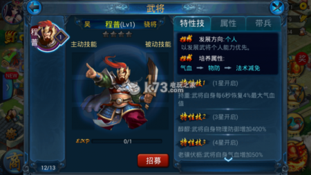 程普的3个特性技全部是防御类属性,这使他成为了一个标准的坦克