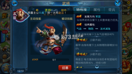 孟获是“军团将”,其士兵的能力比较高,因为带的是盾兵所以整个军团的抗击能力比较好。