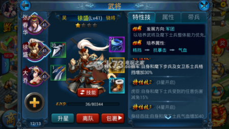 徐盛是“军团将”,其士兵的能力非常高,虽然他可以带女卫,但是女卫擅长闪避,所以建议带领同样具备高超格档能力的盾兵以便能够更好的吸收伤害。