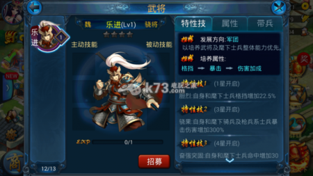 3星:自身和麾下骑兵及枪系士兵暴击伤害增加300%