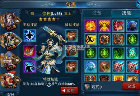 写完技能应该可以看出来了,徐庶在我这里不是个纯粹的肉(五星都没到啊,我去),他被我当做控制、辅助型肉使用,谁让他血多且有200蓝呢