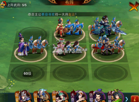 这个阵形很好的克制了第七章的所有阵形。大家记住,轻骑是克遁甲的,放置第二排最好,这样敌人第三排盾甲就需要浪费时间绕后,又被我们克制。