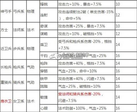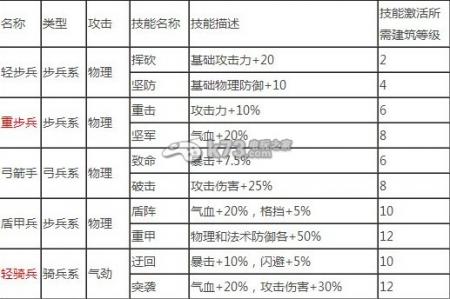 主公莫慌各系兵种技能属性详尽数据大全