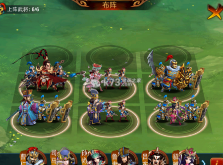 1.阵型是222,这一阵法的核心是保护好了输出DPS,第一排肉盾顶住前线火力,实施第一层次防御,第三排半肉和控制(带步兵、骑兵、枪兵均可,其他远程系太脆)可以有效应付敌方的包抄策略,进行第二层次防御。