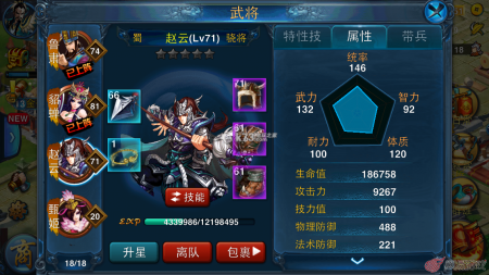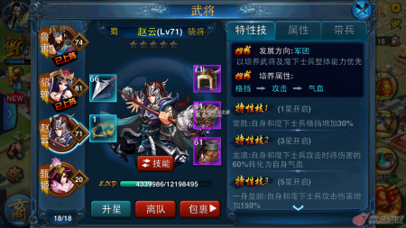 半血半肉型骁将血量不是很高,不过还有攻击,虽然不是很高,但是也不低,特技大部分是两种方向并存的,比如吕布、马超,也比如几乎我们人手一个的赵云,他的特技一是增加格挡,这是偏向于防御持久作战的,而特技三又是增加攻击伤害,这是偏向于伤害的。