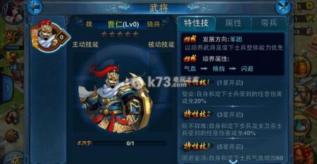其实曹仁这种练法貂蝉一样可以,只不过他只免疫男性角色的伤害,不稳定,而且他特技里的40%格挡高不高低不低,比较鸡肋,如果要再堆格挡的话就不伦不类了。提到貂蝉也是想提一种思路,不知道大家有没有好的建议?!