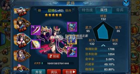 纯血型骁将,笔者推荐要么高抗,要么有躲闪格挡特技的,比如周泰、貂蝉之流都是很不错的。(图中的貂蝉是笔者自己的,装备还没有炼化好,技能也不是特别好,所以并不是很完美。)