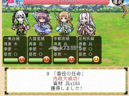 《城姬quest》游戏中如果想要达成内政大成功,除了基本的特性条件要求之外,例如骑士需要啊,人数啊、以及更让开心度等,其实就是如同舰娘的闪光。