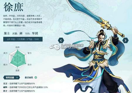 徐庶,现阶段比较尴尬的肉PK尚可推图一般(推荐培养★★★)