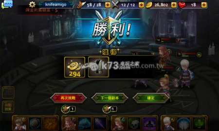 游戏中的副本好处多多,除了可以打到装备、材料之外,最重要的便是可以获得大量的金币,只要玩家身上拥有「行动力」,便可以一直挑战副本。当副本挑战结束后,系统除了会告知本次取得奖励外,玩家还可以直接选择是要挑战下一关?还是该副本继续挑战,操作上虽然满方便的,不过想要继续挑战下一关的朋友,可要自行评估一下自己英雄的等级喔!如果发现当前的副本打起来吃力许多,建议该副本多打几次来练练等级。