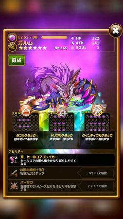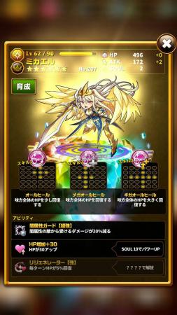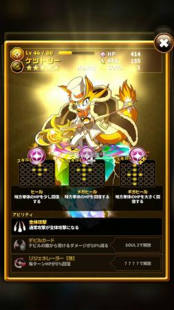 虽然技能是补血 但补的没有很多,重点是他アビリティ的第一招"全体攻击",消耗叁颗珠珠就可以一次打多体,而且他是第一隻不用觉醒就可以有全体攻击的角色