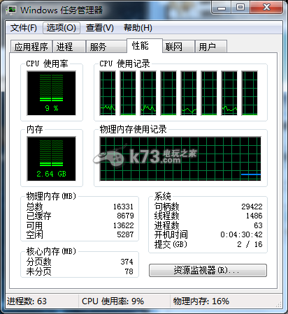 总结:装win7 64bit系统4G内存是标准,再不玩什么游戏情况下。8G则是玩一些主流的网游,或者不算要求不高的单机。16G内存则是玩游戏必备了。好在现在游戏比较和谐,16G内存还算撑得住。我想在不远的未来,64位系统则是玩游戏的基础了,而32位的则渐渐被淘汰。