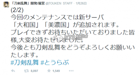如果想第一时间知道什么时候开新服 可以去推特关注刀剑的官推 当然推特目前也是要才能上