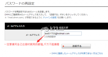然后输入自己注册时候的邮箱 也就是DMM账号 千万不能输错