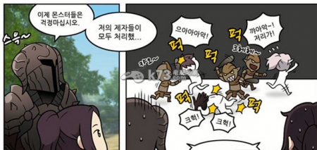 初次进入游戏会让我们下载一大波升级包,有点漫长,不过在等待时会有一些游戏相关的内容滚动出现,还有以漫画形式呈现的新手教学,只不过对白都是韩语,所以也不必太执着。