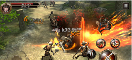 在本作中人物并没有蓝条,所有技能的施放都不会消耗魔法,只有一个时间 CD,所以只要注意躲避攻击,看好自己的血量即可,技能什么的完全不用省。技能中有冲锋型,躲闪型,眩晕型,使用普通攻击再合理搭配技能使出连招是打出高伤害的关键。不论是普通攻击的打击感还是技能效果,都十分给力,特别是音效非常过瘾,让人热血沸腾。
