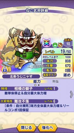当武将达到最大等级时,就可以透过素材(猫巫女+自己)进行转生。转生之后,