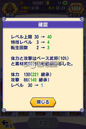 这是游戏中没提到的部分粗算公式>【转生武将*0.1】+【祭品武将*0.05】=转生后的素质(实际上的素质更低?),所以想要完美突破素质的武将建议把祭品也练满再转生吧。