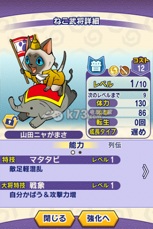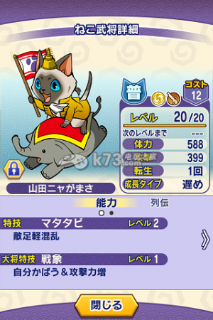 是说这隻能力不高 2转3后 只多了 10 HP 5公击力 ( 崩溃。各位在练角色时多注意COST是不是很高,COST高的话能力也会较高,就算是普卡也会有较好的能力,我这隻只有5 COST 相比楼上大象12 COST 练满也才他的1/2(能力值)