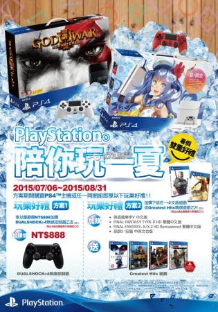 索尼电脑娱乐(SCET)今日宣布2015年PlayStation® 夏季优惠方案「PlayStation®陪你玩一夏」将于今日起展开喽!只要购买PS4主机或一款PS4主机同捆组,就能参加「玩乐好礼」优惠方案,活动时间7月6日起至8月31日 。此外,同步推出由知名插画家「VOFAN」设计外盒视觉图的「AI Fun假」PS4™主机夏日限定同捆组。