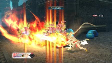 | SC槽通过使出攻击来消耗,最大可累积至100(上图表示的蓝色槽)。基本上术技的威力和SC消耗成正比。 |