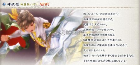 史雷与艾多娜神依化之后变化成地属性的神依形态。其武器是巨大的手臂。以压倒性威力释放一连串的攻击,在3次连携攻击以后会化作巨大的拳,在地面形成隆起,威力之大目见所及。 因为攻击多沿着地面引发,适用于爬行于小块地面的敌人。 |