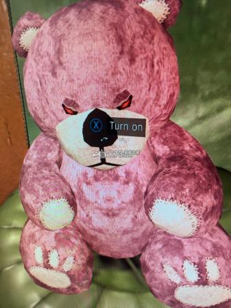 大家应该都知道玩具总动员3里面的粉红熊熊,在第二张地图中会有一个支线任务要主角去一间屋子里,有很多小孩跟一位魔法师,因为是从屋顶进去所以一进去就会有楼梯,进门要跑一下画面来进到内部,没接任务也可以进去,进门后的那一层会有另外一扇门,打开后会是一个儿童游戏室,你会看到右手边台面上有一只粉红色熊娃娃,我怀疑他这是在做Losto,因为从一开始玩到现在所有的熊熊都是泰迪熊,这只却是粉红色的。
