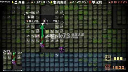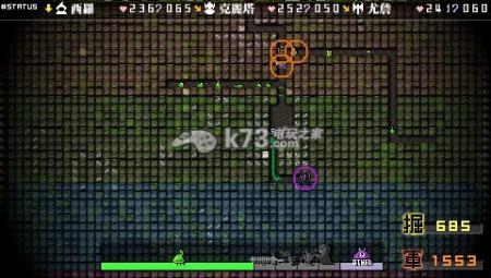 第一关:第一关的勇者相当弱小。难点在于在第一个勇者到来之前敲出龙砖。你要估略地图,选定魔份富足的地方,开始培养龙。勇者出来前敲出一条绿龙,然后敲两下,变绿龙蛋,(别多敲,你敲三下就等别飞灰吧)出来后再敲两下,变粉龙蛋,不要怕勇者敲蛋,500HP的蛋蛋,不会碎(为啥出来的粉龙只有两百多血啊)。粉龙单挑第一关的勇者是相当轻松的,咬死勇者,魔份就打到80左右,而且不会因为血量太少而变蛋影响过关评价。