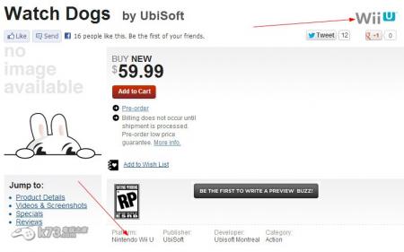 日前,GameStop方面公开了一个全新的游戏预订页面引起了众多玩家的注目,那就是育碧于去年公开的超级大作《Watch Dogs》的WiiU版的预订页面得到了公开,GameStop还公开了游戏的预订价格。
