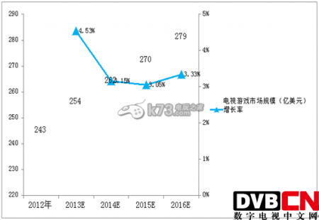 据市场研究公司Newzoo最新预测数据显示:从2012年到2016年,电视游戏市场将呈现逐年稳定增长的态势。
